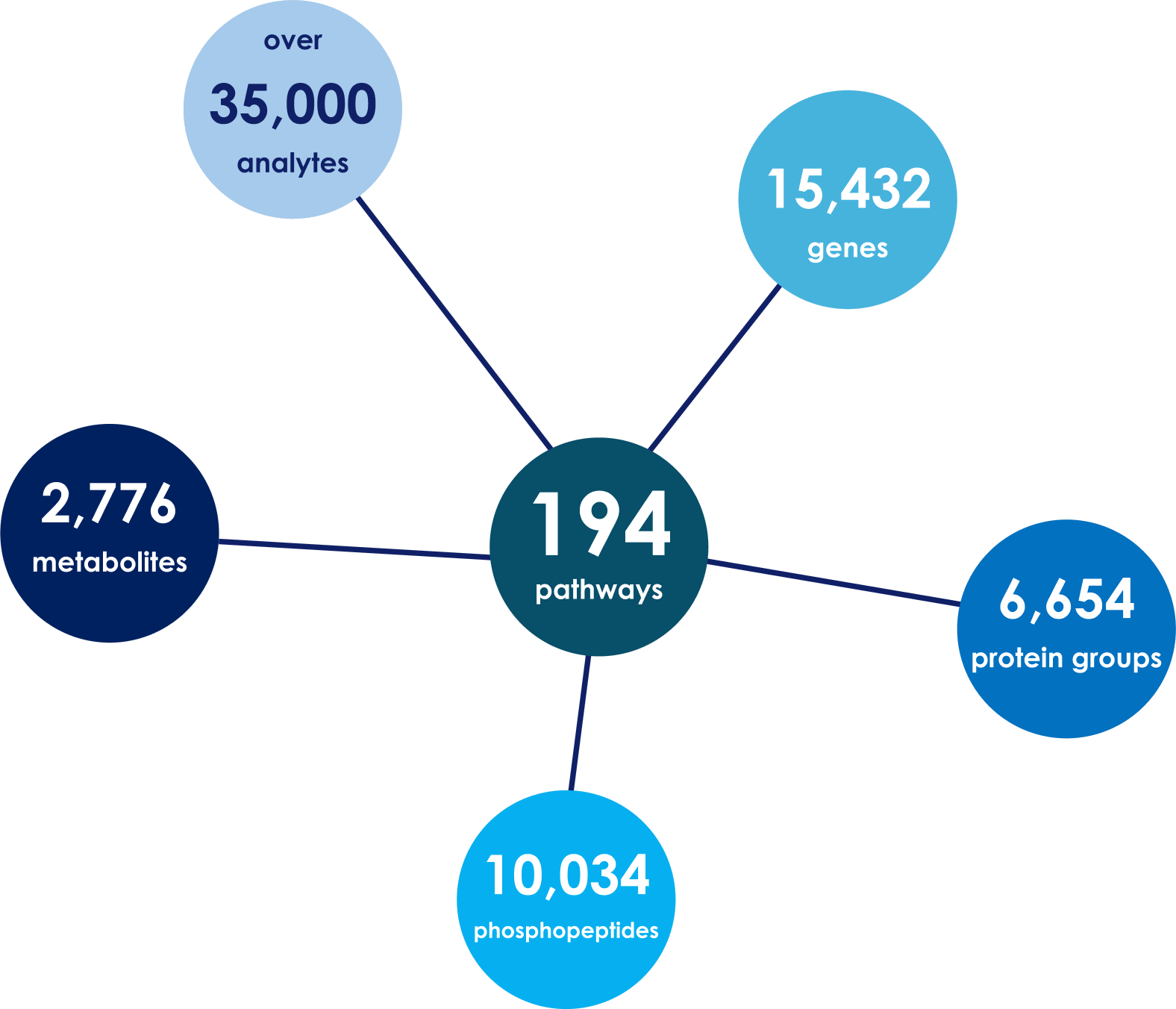 - >390 disrupted pathways and >1,000 analytes distilled into <100 key molecules.