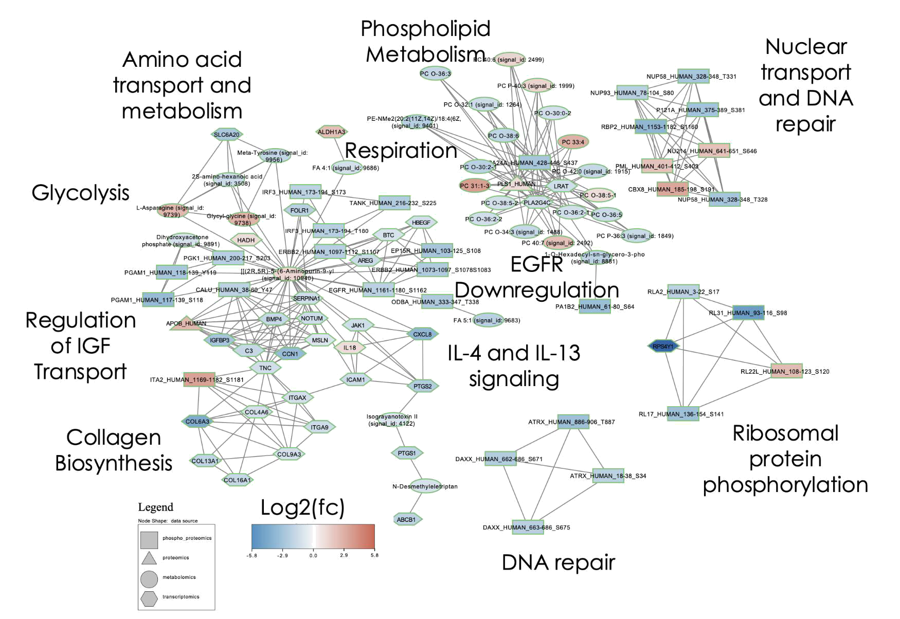 - Integrated network links genes, proteins, phosphopeptides, and metabolites, exposing coordinated shifts invisible to single-omics.