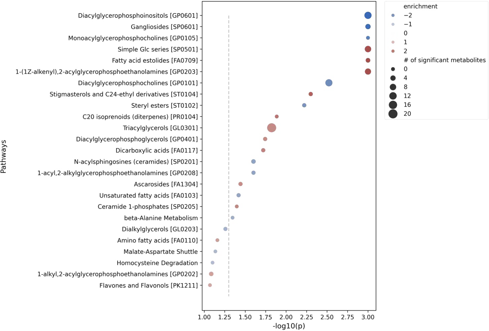 - Depleted: Diacylglycerophosphoinositols, gangliosides.
