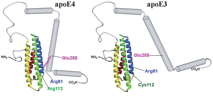 Figure 1: Structural differences of Apo ε4 and ApoE3 (doi:10.3233/JAD-2010-100009)