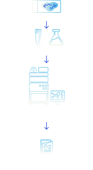 - Untargeted Approach, with validation: FFPE samples are screened against our >175,000 compound database with results validated against compatible compound classes.