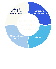 Panome Bio offers a comprehensive suite of microbiome function analysis tools that bring a focus on bile acids (host and microbial-conjugated) and short chain fatty acids (SCFAs) to our global metabolomics screen, allowing for the greatest discovery potential when studying the role of the microbiome in health and disease. Panome Bio can also offer a multi-omics approach by integrating customer-provided microbiome sequencing and transcriptomics data with our metabolomics. Integration of genomics, transcriptomics, and metabolomics data can be used to identify gene-metabolite relationships, understand metabolic pathways, understand cellular response and mechanism of disease, and discover novel biomarkers and drug targets.